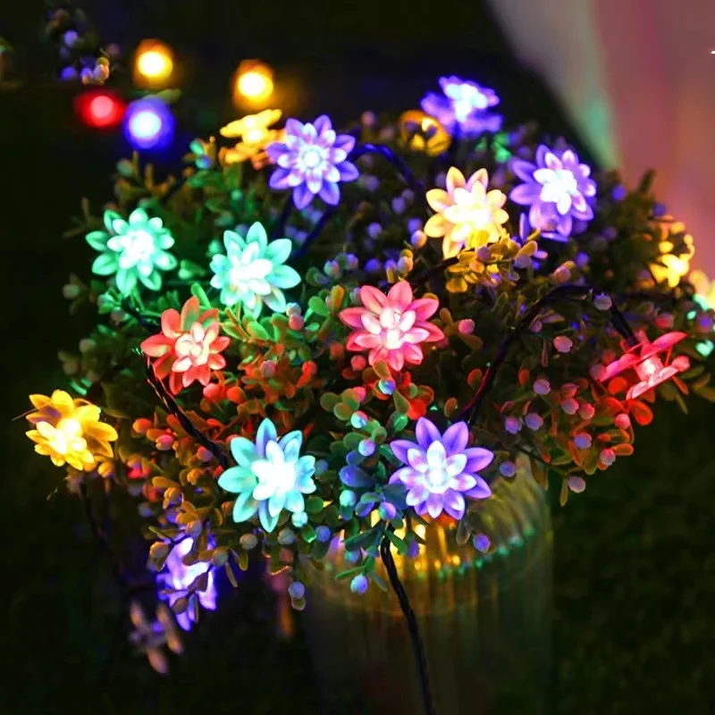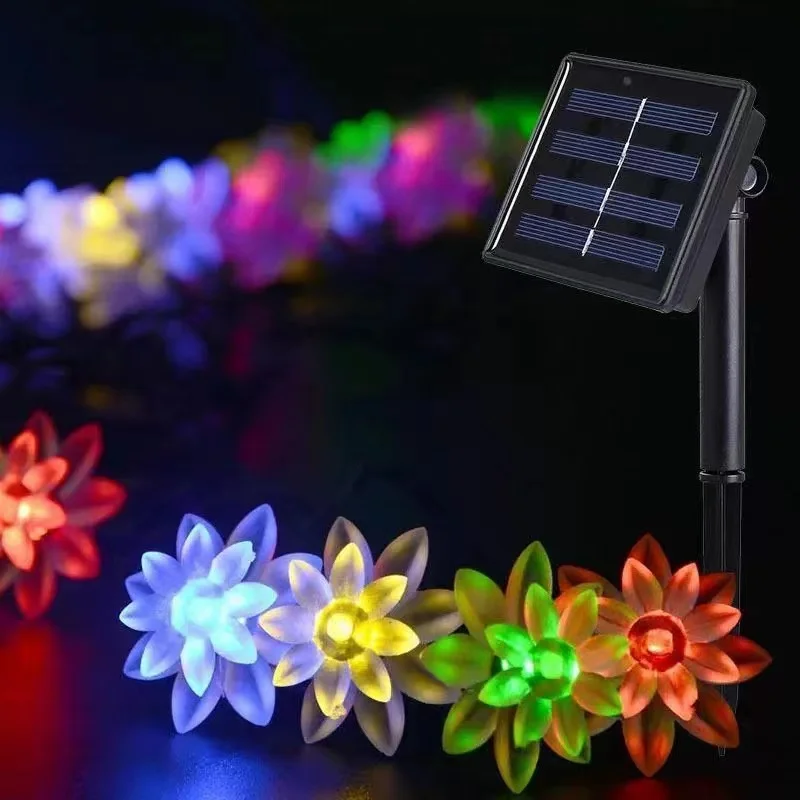 7 Colors Solar String Lights Outdoor  Lotus Flower Lamp 100/50/20LED String - Multi Shop24