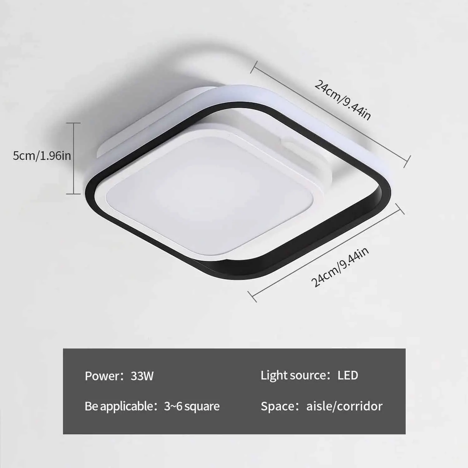 This modern style ceiling light features a unique square design, with a white inner and black outer body color that creates a strong visual contrast. It is both fashionable and layered, perfectly matching the modern minimalist home style. Suitable for pursuing a simple yet personalized home decoration style.