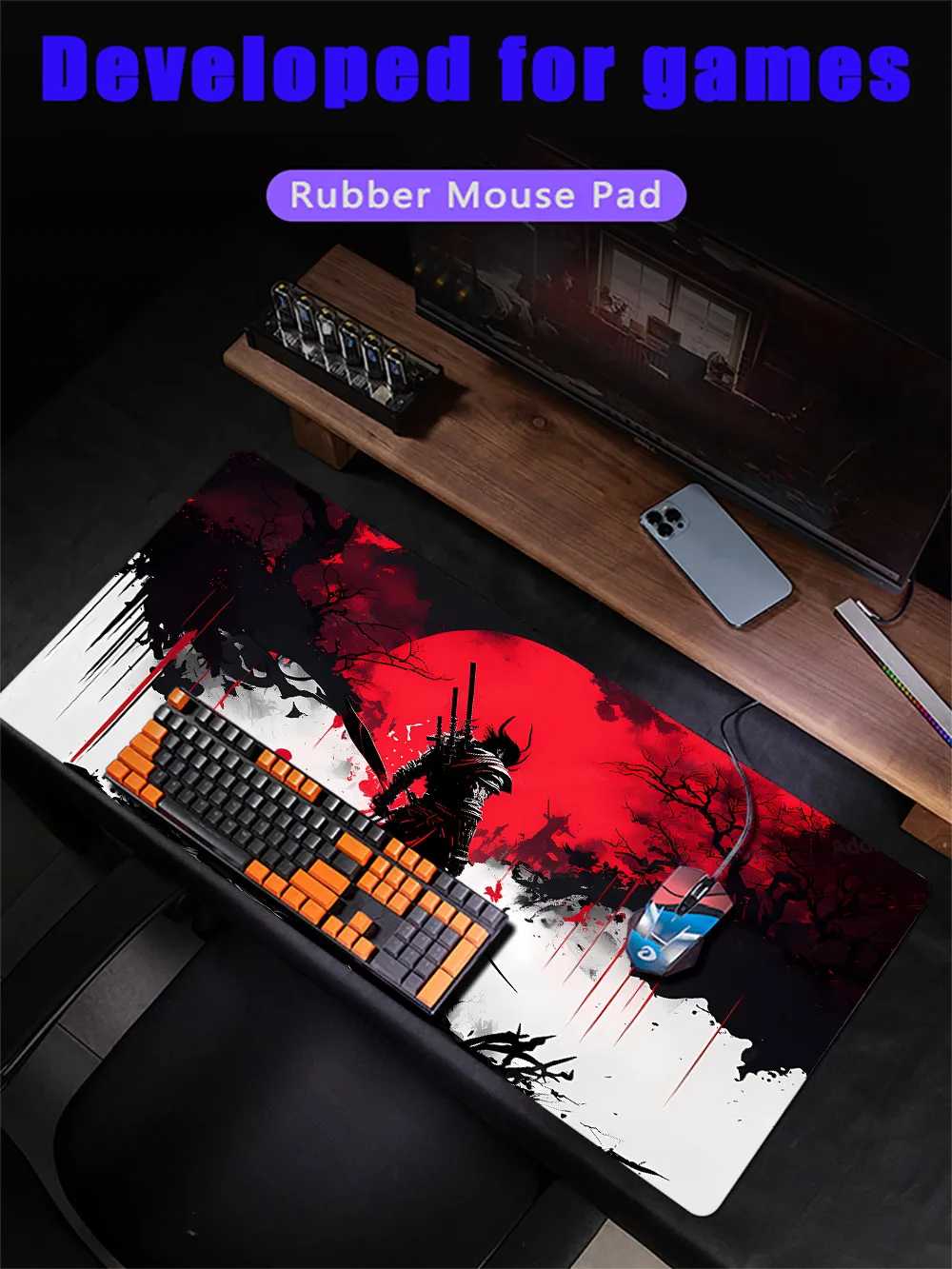 Japanese Sakura Samurai Black Mouse Pad Gamer Table Mat Teclado