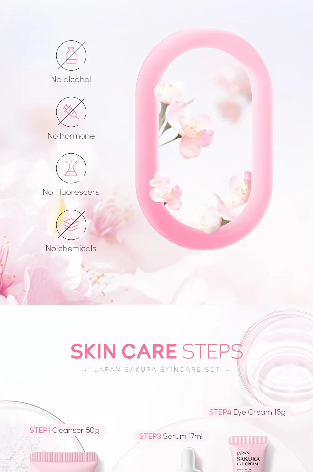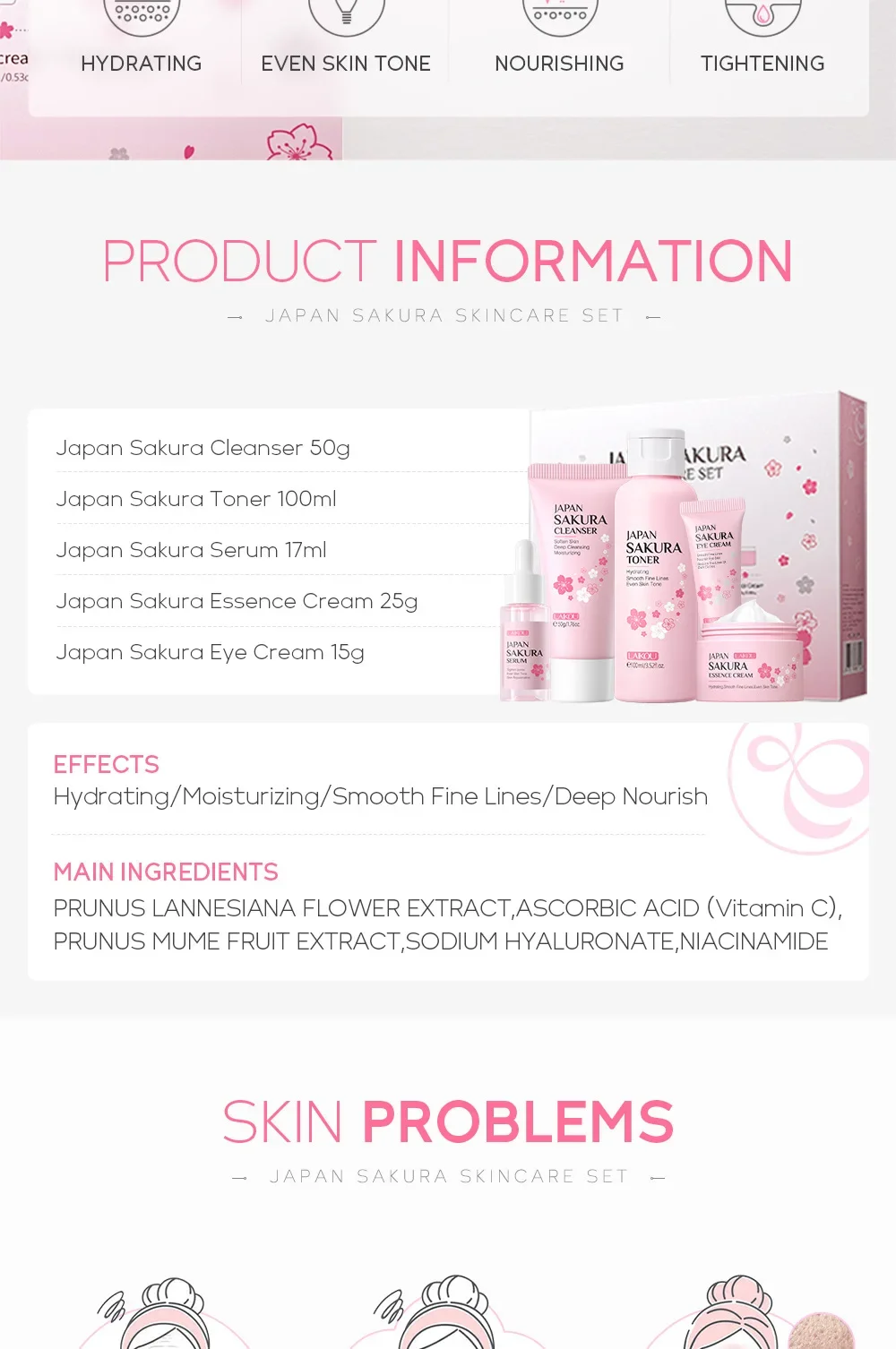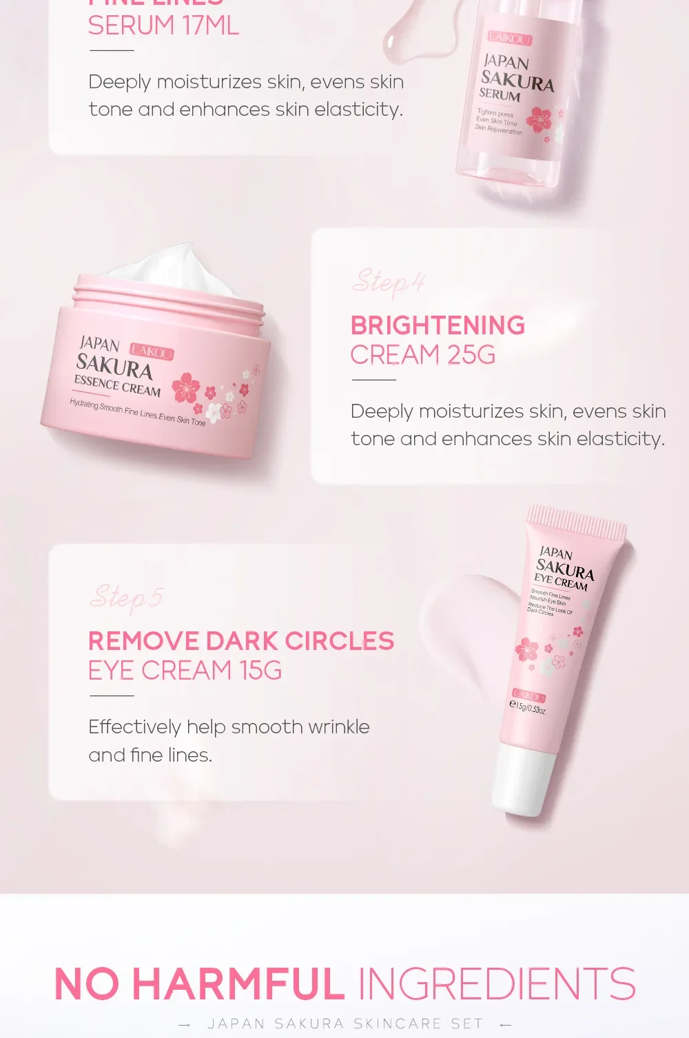 Sakura cleanser 50g+face toner 100ml+ serum 17ml+ face cream 25g+eye cream 15g