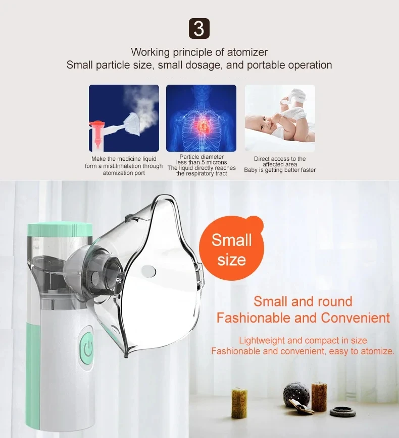 This portable mesh nebulizer is suitable for breathing problems, and the cold mist humidifier kit is suitable for travel or daily use at home.