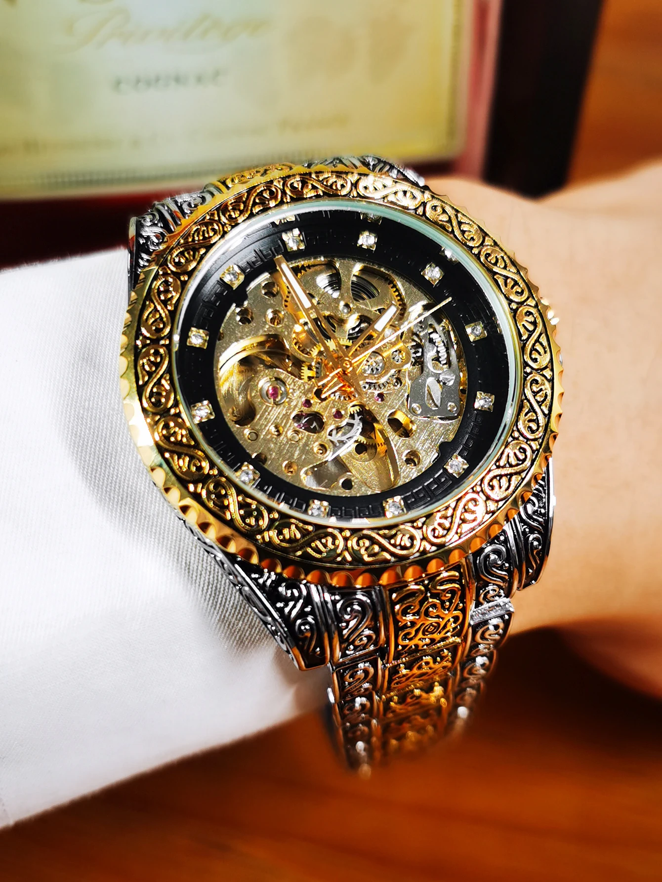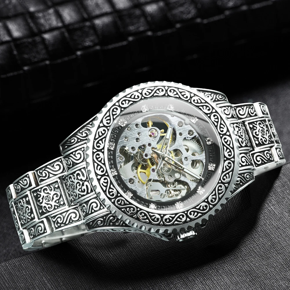WINNER Vintage Engraved Skeleton Mechanical Watch for Men